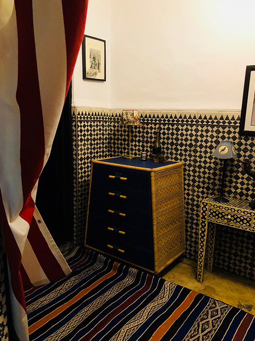 Izghi, c'est la Beauté dans le plus simple appareil ! S'ouvrant sur le jardin derrière de grands rideaux rouge et blanc, comme une tante de bédouin , la chambre est fraîche l'été . Un lit King size sous une magnifique couverture berbère orange et noire, à le parfum des sables du Sahara. La spacieuse salle de bain, belle de sa simplicité , noire avec une douche à l'italienne à même le sol, dans un angle Vous rafraîchira de retour des derbs brûlant l'été ; l'hivers, elle sera votre hamam privé, avant un bon massage au Riad.
